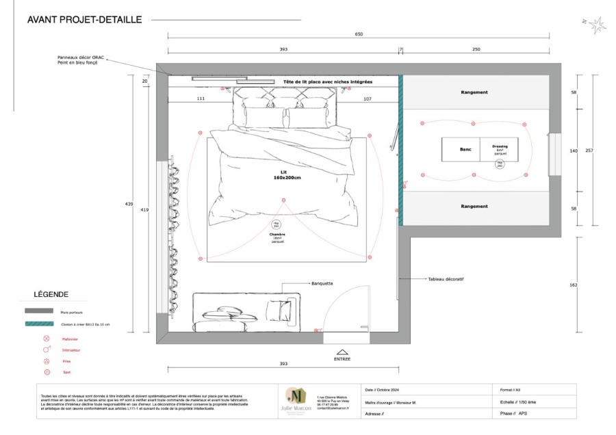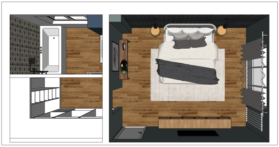 Mes clients on voulu, suite à un agrandissement de leur maison créer à la place de ceux-ci une grande chambre parentale avec un espace dressing et une salle de bain.